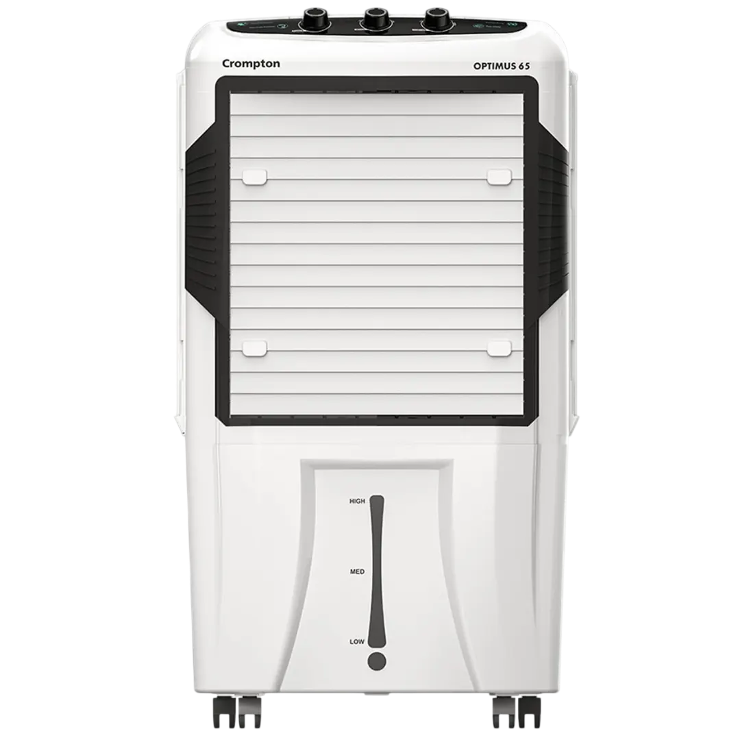 The Crompton Optimus 65 Litres Desert Air Cooler is a powerful and reliable cooling solution designed for large home spaces and hot Indian summers. With a strong air delivery of 5500 CMH, this desert air cooler efficiently circulates cool air across rooms up to 650 sq. ft., making it ideal for living rooms, halls, offices, and open areas. Its 4-way air delivery system ensures uniform cooling in every corner of the room, keeping the environment fresh and comfortable for long hours.