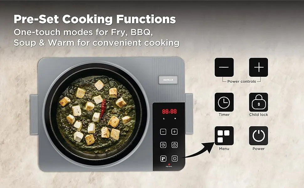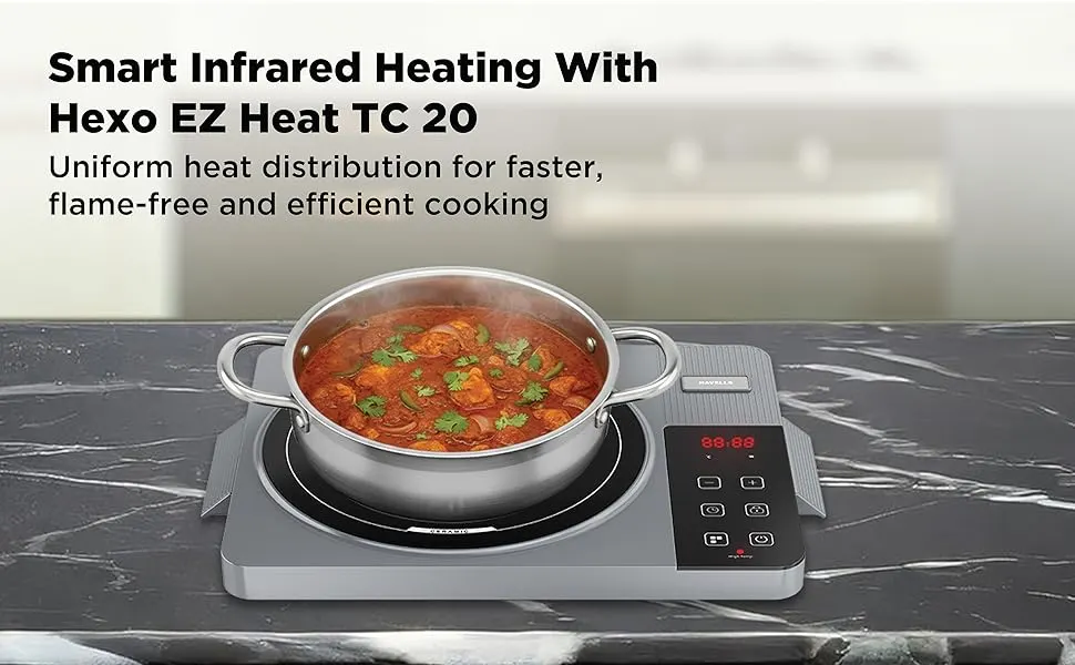 The Havells EZ Heat TC20 Infrared Cooktop is a powerful and versatile cooking solution designed for modern kitchens. With its 2000W high-performance heating, it ensures quick heat-up and efficient cooking, saving both time and energy. Whether you are preparing daily meals or quick snacks, this cooktop delivers consistent and reliable performance for all your cooking needs.