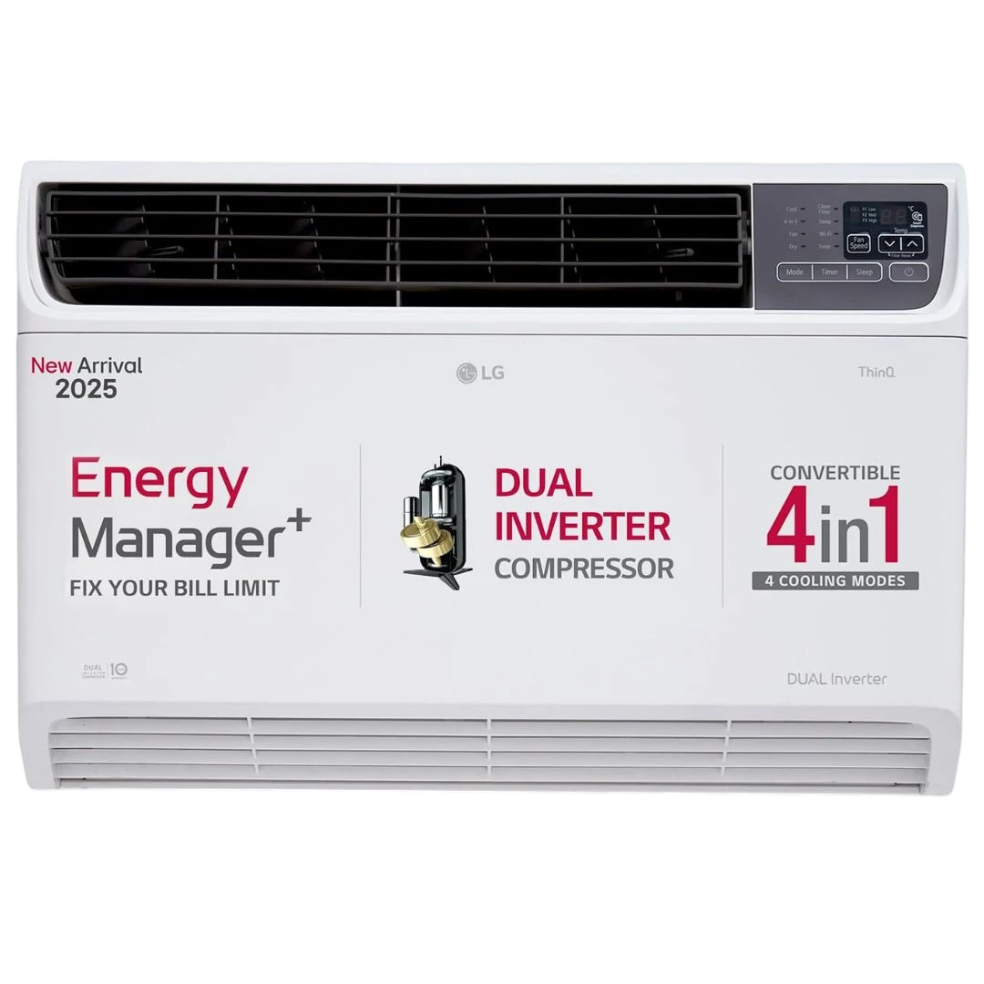 LG 2 Ton 4-Star DUAL Inverter Window AC (UW-Q24WWYA, 2025) is designed to deliver superior cooling with energy efficiency and smart features. Equipped with DUAL Inverter technology, it ensures faster cooling while consuming less power and operating quietly. Its 4-in-1 convertible cooling modes – fast, smart, eco, and sleep – allow you to customize comfort based on your needs. The AC features a durable copper condenser for long-lasting performance and enhanced heat exchange. With a 4-Star energy rating, it offers lower electricity bills without compromising on cooling efficiency. The sleek white design complements modern interiors, while added features like auto-restart, sleep mode, and turbo cooling provide convenience and comfort. Ideal for medium to large rooms, this LG AC combines performance, durability, and energy efficiency.