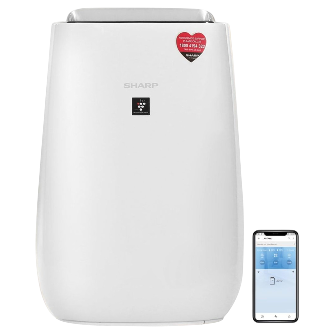 Sharp FP-J52M-W Smart Air Purifier, designed to protect your family from indoor pollution and allergens. Equipped with Wi-Fi connectivity, advanced filtration, and real-time monitoring, this purifier combines Japanese technology with smart convenience to ensure cleaner, fresher air in your home.