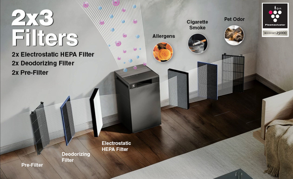 Combined with Plasmacluster Ion technology, it neutralizes airborne viruses and bacteria for added protection.