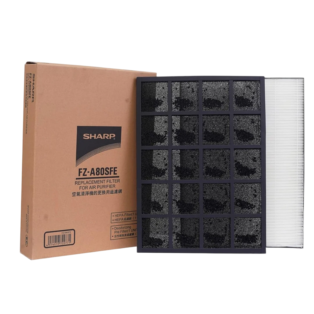 The Sharp FZ-A80SFE Original Filter Set combines HEPA and Activated Carbon filters to provide complete air purification for Sharp Air Purifiers FU-A80E-W and FP-A80M-W. This genuine replacement set captures up to 99.97% of microscopic particles, including dust, pollen, smoke, and allergens, while the carbon filter removes odors and harmful gases. Easy to install, it helps maintain optimal airflow and peak performance, ensuring your air purifier continues delivering clean, fresh, and healthy indoor air.