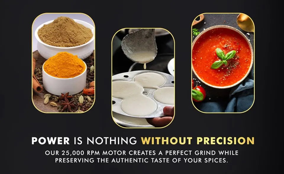 25,000 RPM Speed: Delivers super-fast grinding, blending, and mixing for all ingredients.