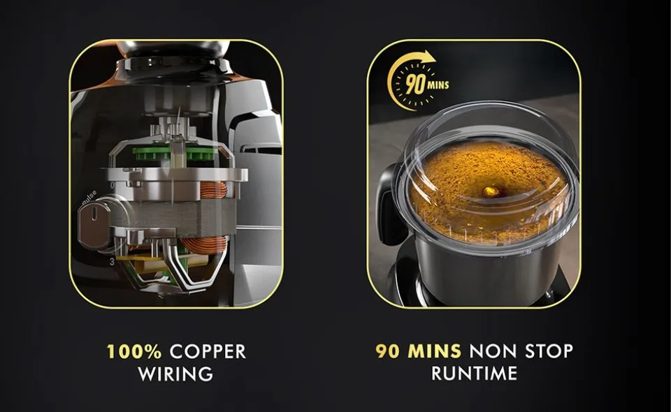 3 Multi-Purpose Jars: Includes a 1.75 L blender, 1 1L grinder, and 0.5 L chutney jar.