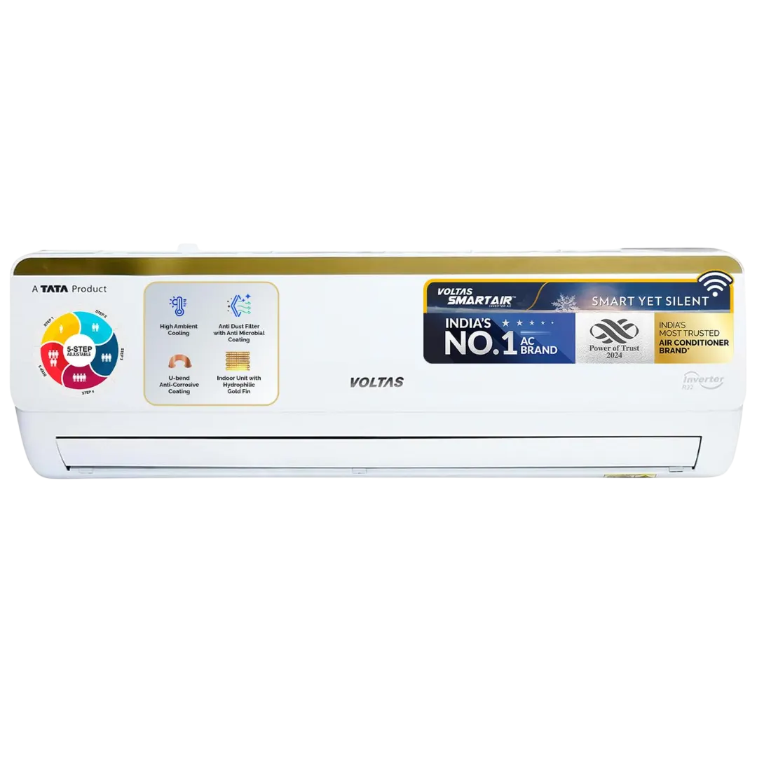 The Voltas 183V Vertis Smart Elite Gold 1.5 Ton 3 Star Inverter Split AC with Wi-Fi is engineered to deliver powerful, reliable, and energy-efficient cooling for medium-sized rooms ranging from 111 to 150 sq. ft. Designed especially for Indian climate conditions, this AC is capable of maintaining effective cooling even at extreme ambient temperatures of up to 52°C, ensuring comfort during peak summers.