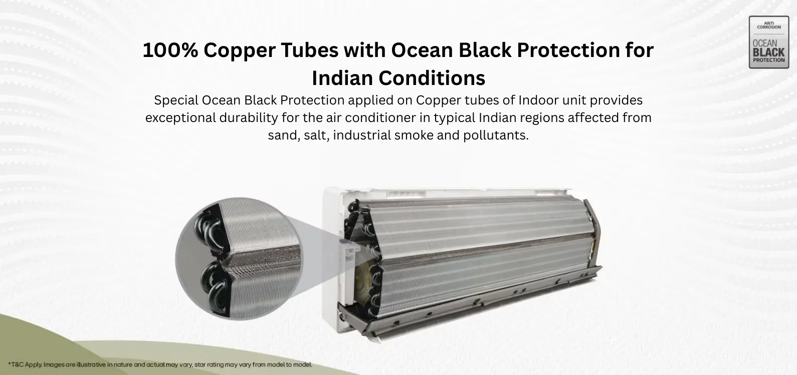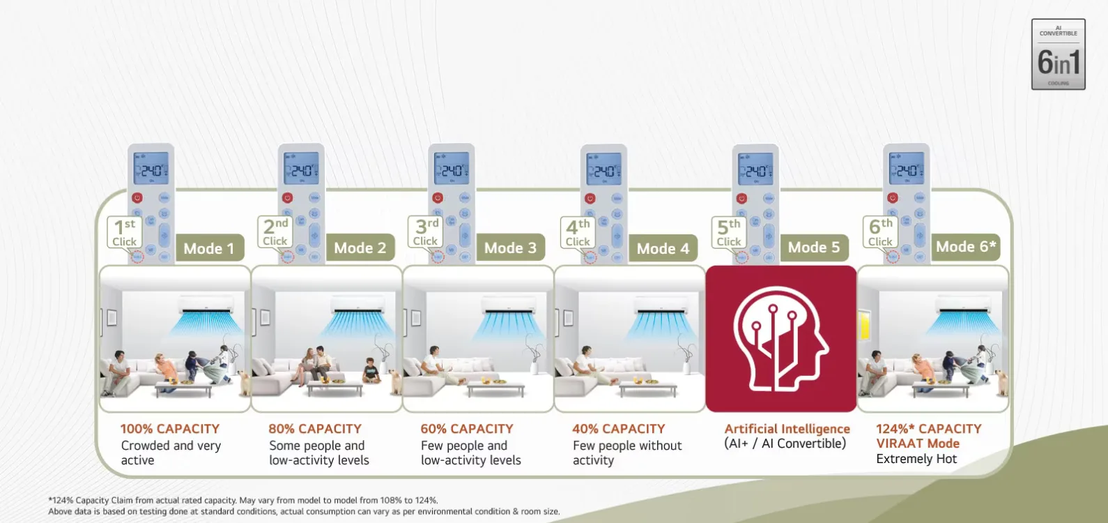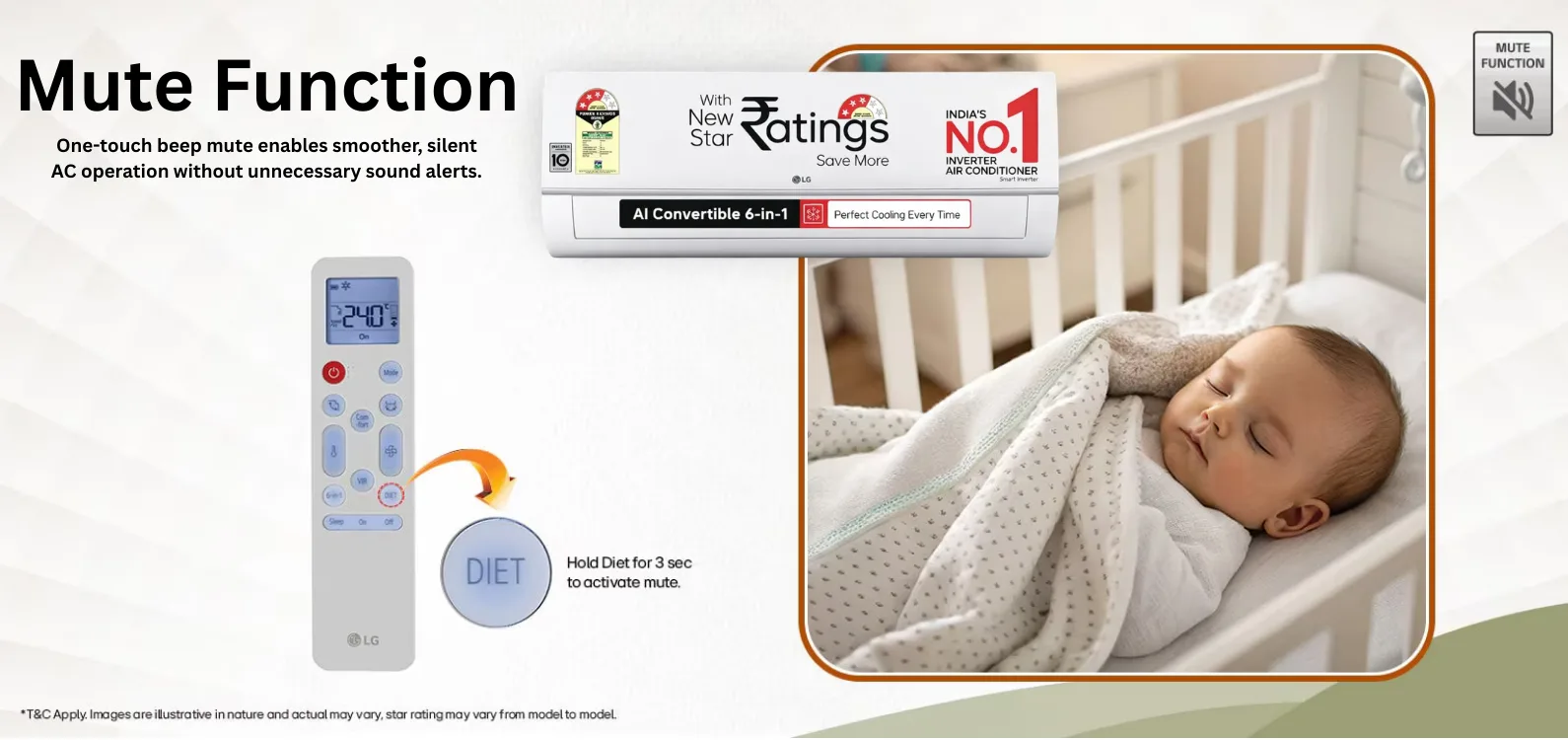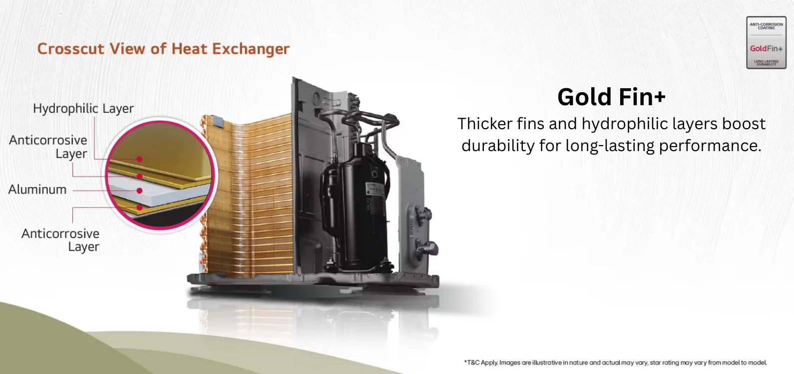 With Viraat Mode, the AC delivers instant high-speed cooling during extreme summer heat, while Diet Mode+ intelligently limits power consumption to help lower electricity bills without compromising comfort. The high-performance 5.0 kW cooling capacity ensures quick and uniform cooling across the room. Equipped with an HD Filter with Gold Fin+ coating, the AC enhances air quality and protects the condenser from corrosion, extending the life of the unit. Built with durable copper tubes and finished in an elegant white design, the LG AS-Q19MNXE combines smart technology, durability, and modern aesthetics, making it a reliable and value-for-money choice for Indian homes.