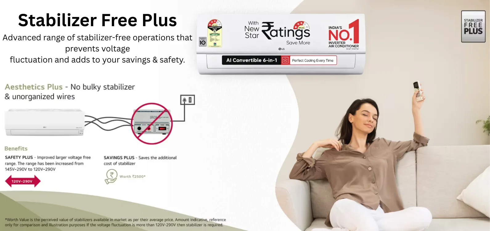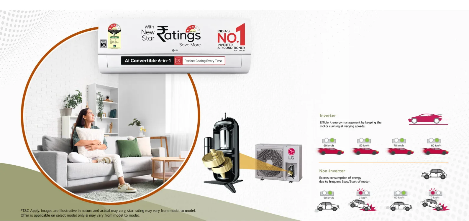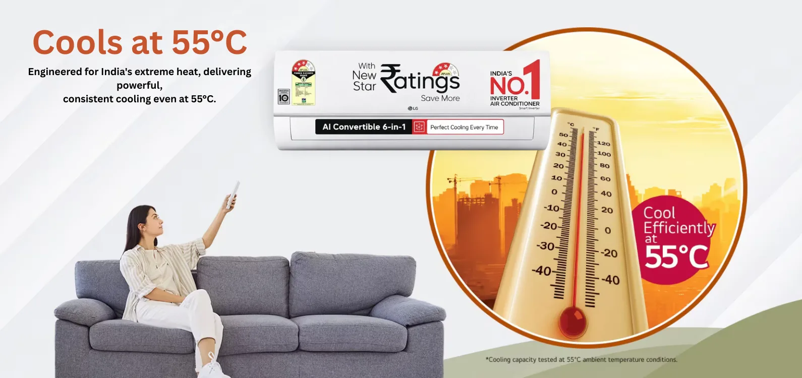 LG AS-Q19MNXE 1.5 Ton 3 Star AI Dual Inverter Split AC (2026 Model) is engineered to deliver powerful, intelligent, and energy-efficient cooling for medium-sized rooms. Featuring advanced AI Convertible 6-in-1 technology, this AC automatically adjusts its cooling capacity based on room temperature and usage patterns, ensuring optimal comfort while reducing electricity consumption. The AI Dual Inverter Compressor provides faster and more stable cooling with minimal noise and vibration, making it ideal for long daily usage.